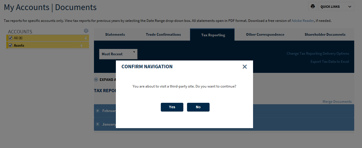 6. Once download option has been selected, a pop up screen will appear informing the user they are being directed to a third-party site, select YES
